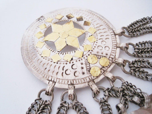 Omani Hair Ornament, Silver with Gold Leaf Pendant