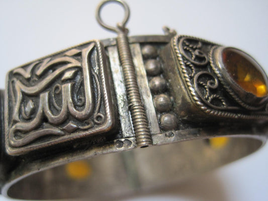 Vintage Algerian Silver and Yellow Glass Bracelet from French Colonial Times