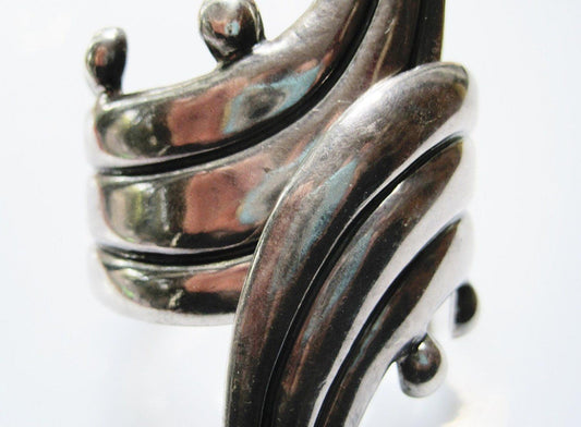 Vintage Small Mexican Sterling Silver Clamper Bracelet - Mid Century Spring Hinged Bracelet
