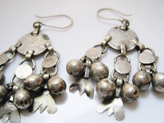 Vintage Bedouin Silver Coin Dangle Yemeni Earrings