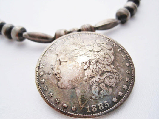 Vintage Navajo Morgan Dollar Necklace with Silver Bench Beads