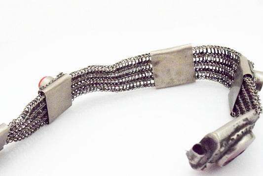 Old Large Metal Mesh Bedouin Bracelet with Red Glass