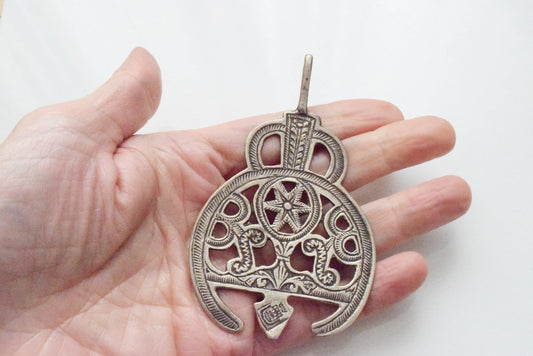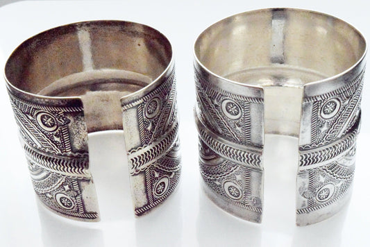 Pair of Wide Silver Berber Cuffs with Fish Motif