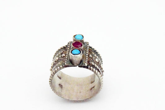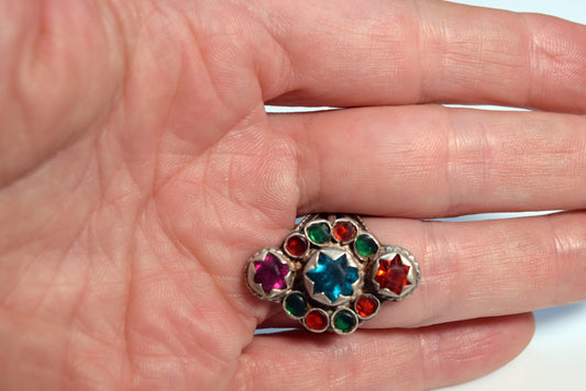 Reserved for O - Vintage Afghani Silver Multicolored Glass Ring