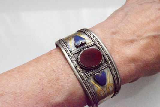 Vintage Silver Afghan Lapis Lazuli and Carnelian Bracelet