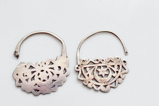 Vintage Small Tunisian Silver Hoop Earrings with Crescent and Star