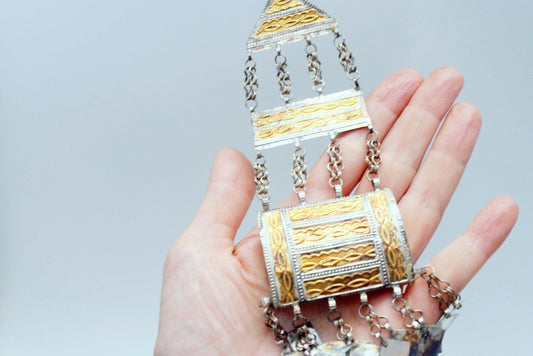 Vintage Omani Headdress Ornament, Silver with Gold Leaf Pendant