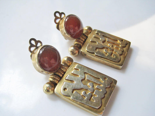 Gold Plated Silver and Carnelian MashAllah Egyptian Clip On Earrings