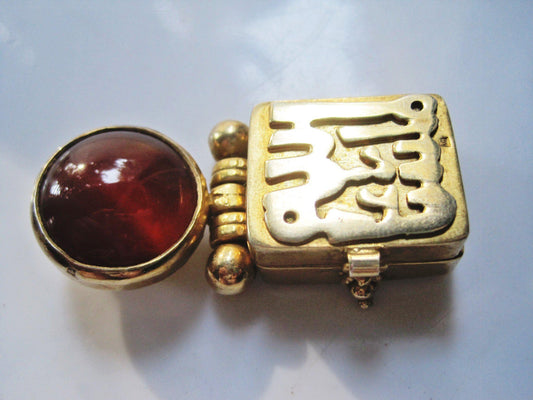 Gold Plated Silver and Carnelian MashAllah Egyptian Pendant with Secret Compartment