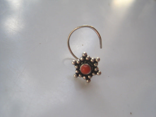 Indian Nose Ring Sterling Silver and Coral Nose Stud Piercing