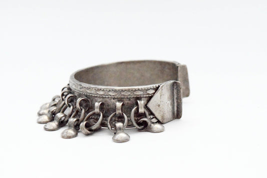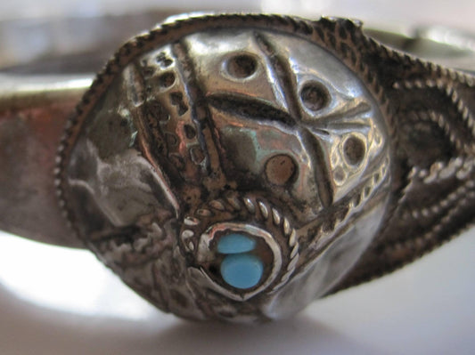 Antique Indian Anklet from Gujarat Made of Low Silver Alloy and Turquoise