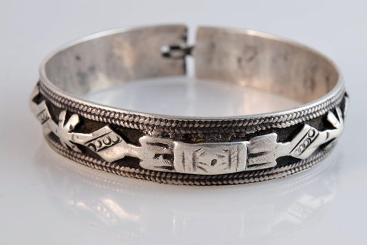 Antique Chinese Repousse Bracelet with Auspicious Symbols
