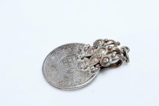 Antique Indian Silver Coin Pendant One Rupee George V 1916