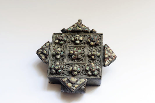 Antique Turkoman Button Made of Gold Gilted Silver and Colored Glass