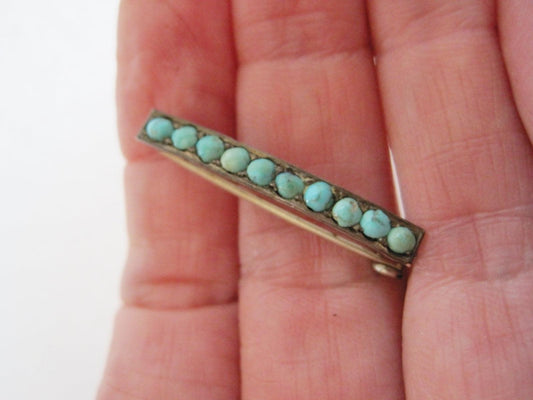 Antique Victorian Silver and Turquoise Bar Brooch or Pin