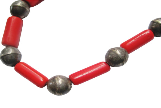 Small Vintage Choker Necklace with Red Beads and Mexican Beads