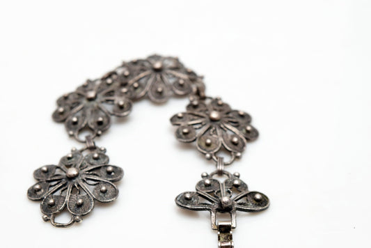 Vintage Mexican Silver Flower Link Bracelet