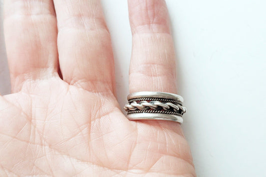 Vintage Silver Egyptian Bedouin Ring with Twisted Roping Center