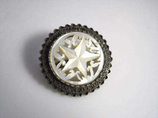 Vintage Carved Mother of Pearl and Sterling Silver Bethlehem Star Brooch