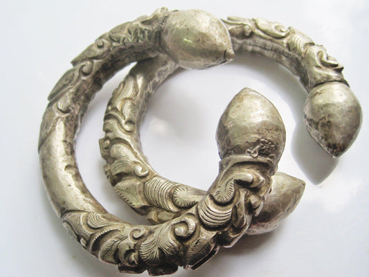 Vintage Matching Pair of Nepal Double Makara Anklets or Foot Bracelets
