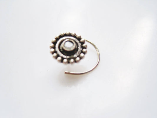 Sterling Silver and Pearl Piercing Indian Nose Ring