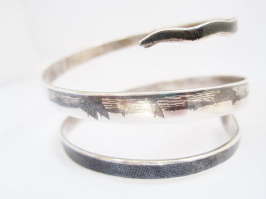 Vintage Middle East Silver and Niello Triple Coil Snake Bracelet