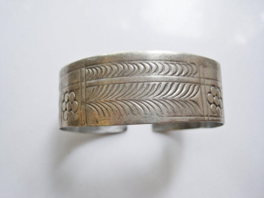 Vintage Berber Silver Cuff with Hand Etched Patterns