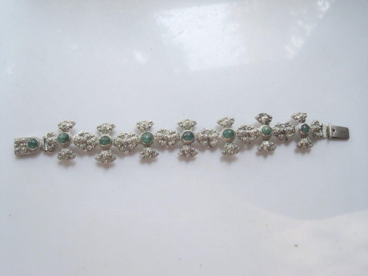 Vintage Middle East Jerusalem Cross Silver and Green Stone Bracelet