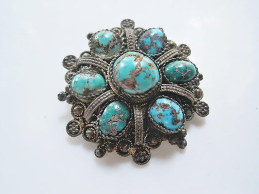 Vintage Natural Turquoise and 935 Silver Brooch and Pendant
