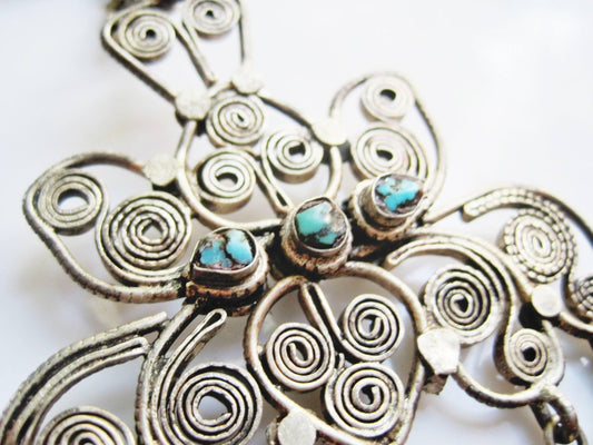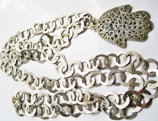 Vintage Berber Khamsa Necklace, Tunisian Rihana Silver Chain and Khamsa Pendant