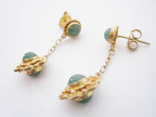 Vintage Chinese Gold Gilt Silver and Jade Post Earrings