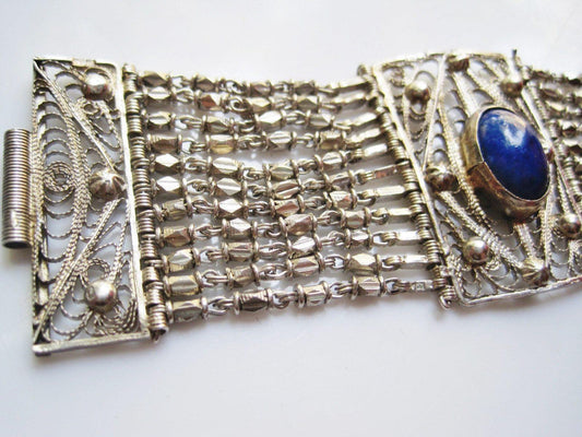 Vintage Egyptian Bracelet 800 Silver and Lapis