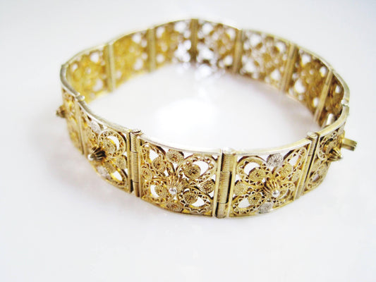 Vintage Italian Bracelet Made of Gold Gilt 800 Silver Filigree