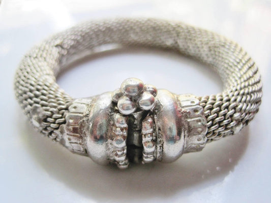 Tribal Silver Bracelet, Silver Mesh Bangle from India