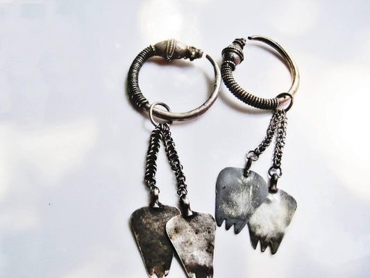 Vintage Bedouin Omani Earrings, Silver Oman Jewelry