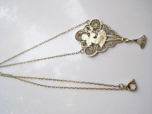 Vintage Egyptian Gold Plated Silver Filigree Necklace