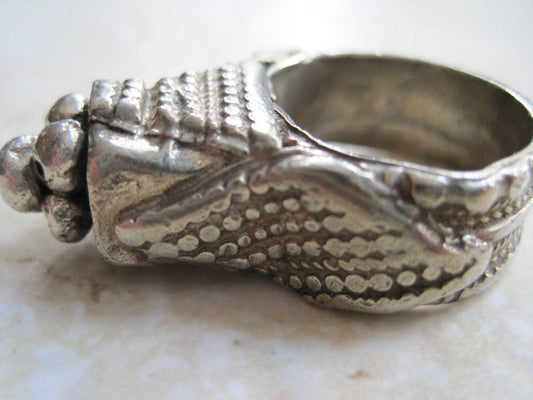 Vintage Bedouin Ring - Tribal Silver Tower Ring - Size 8 and a half