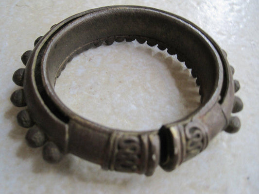 Vintage Bronze Bracelet - Asian Rattle Dance Bangle - Spike Bracelet