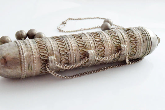 Vintage Bedouin Cylindrical Amulet Box Pendant