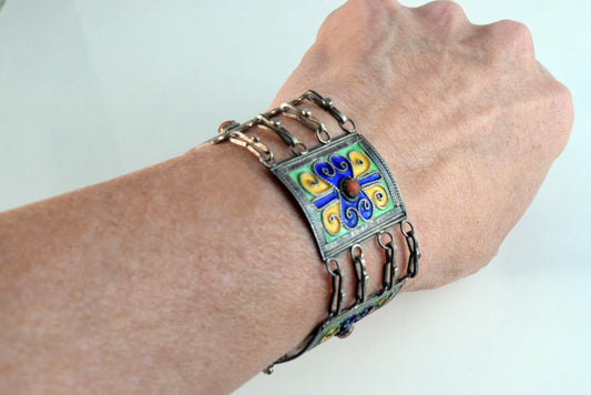 Vintage Kabyle Berber Silver Enamel Link Bracelet