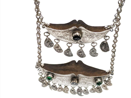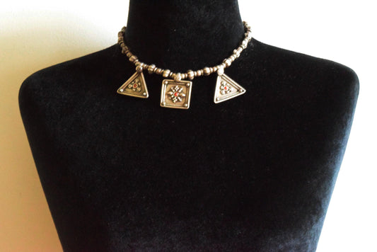 Vintage Silver Omani Triangular Pendant Hirz Necklace